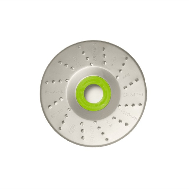 Effektiv slipeskive/rasp for montering på vinkelsliper, utviklet for grovsliping og forming av myke materialer som tre, plast, gummi og polystyren.